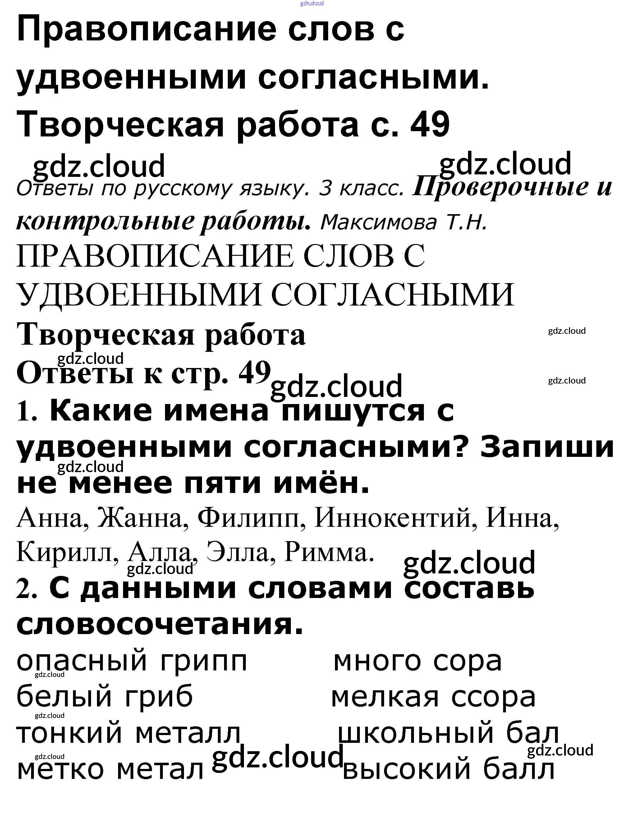 Ответ на задание 49 Проверочные и контрольные работы Русский язык за 3 (третий) класс Максимова 2018