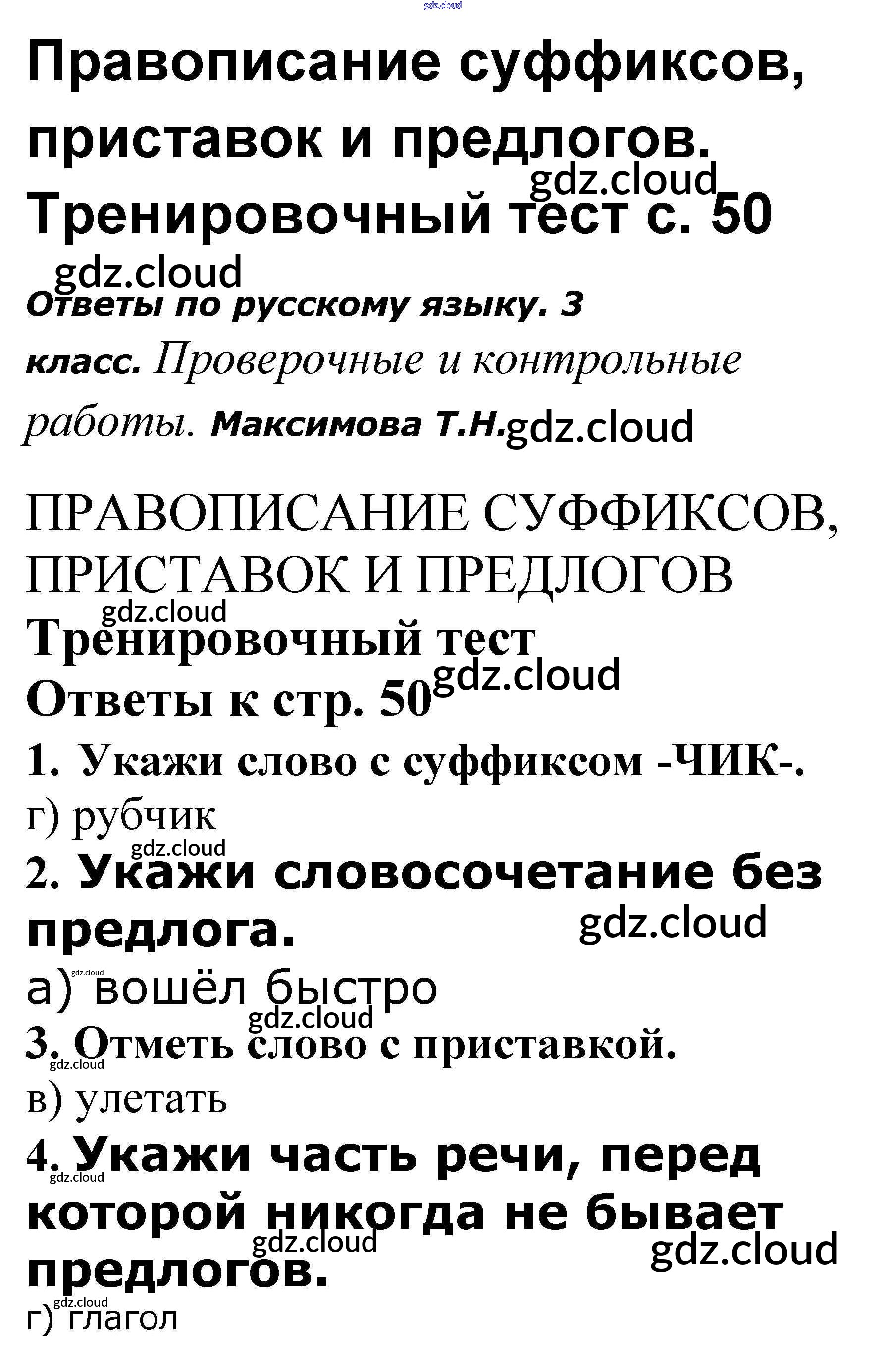 Ответ на задание 50 Проверочные и контрольные работы Русский язык за 3 (третий) класс Максимова 2018