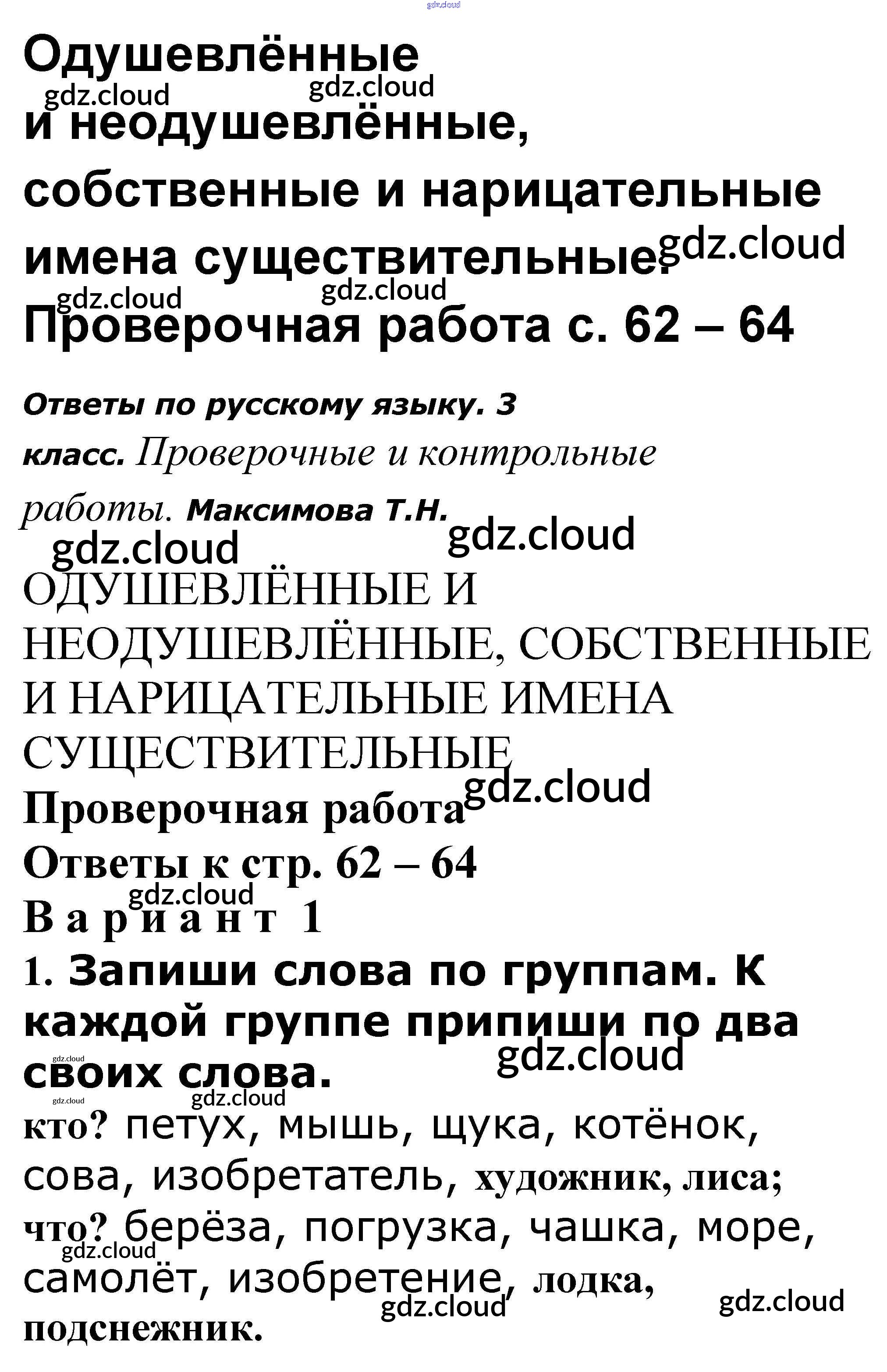 Ответ на задание 62-64 Проверочные и контрольные работы Русский язык за 3 (третий) класс Максимова 2018