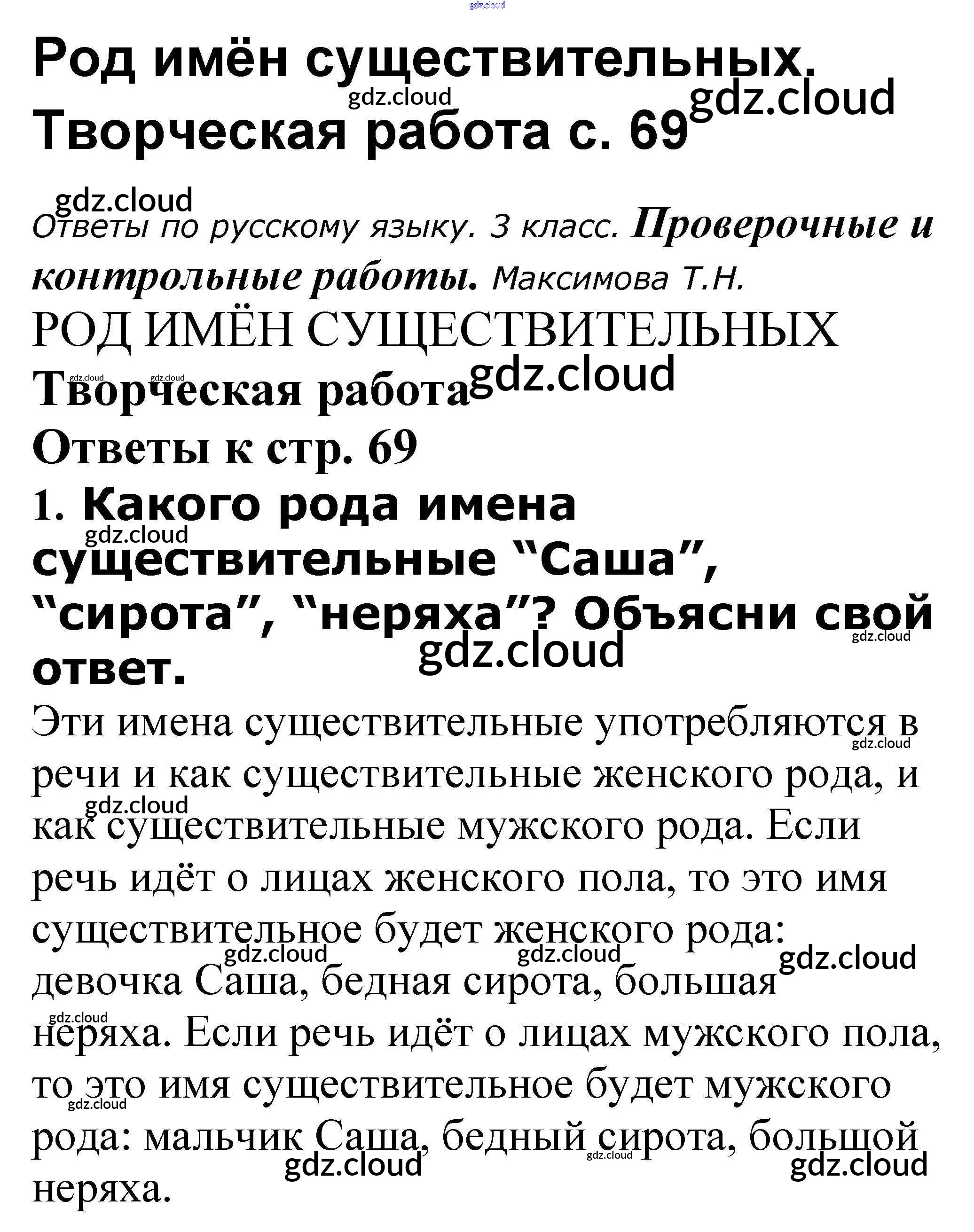 Ответ на задание 69 Проверочные и контрольные работы Русский язык за 3 (третий) класс Максимова 2018