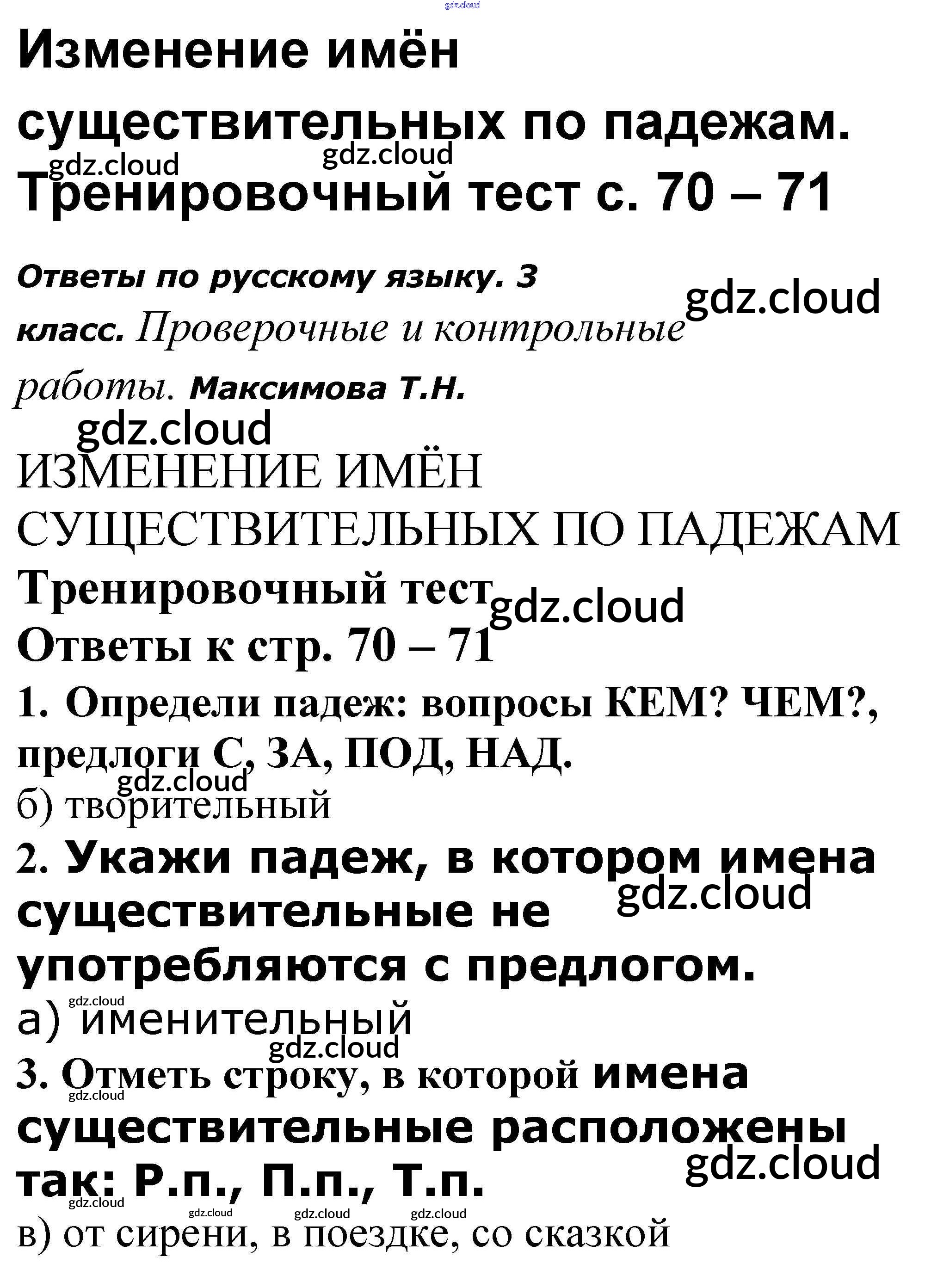 Ответ на задание 70-71 Проверочные и контрольные работы Русский язык за 3 (третий) класс Максимова 2018