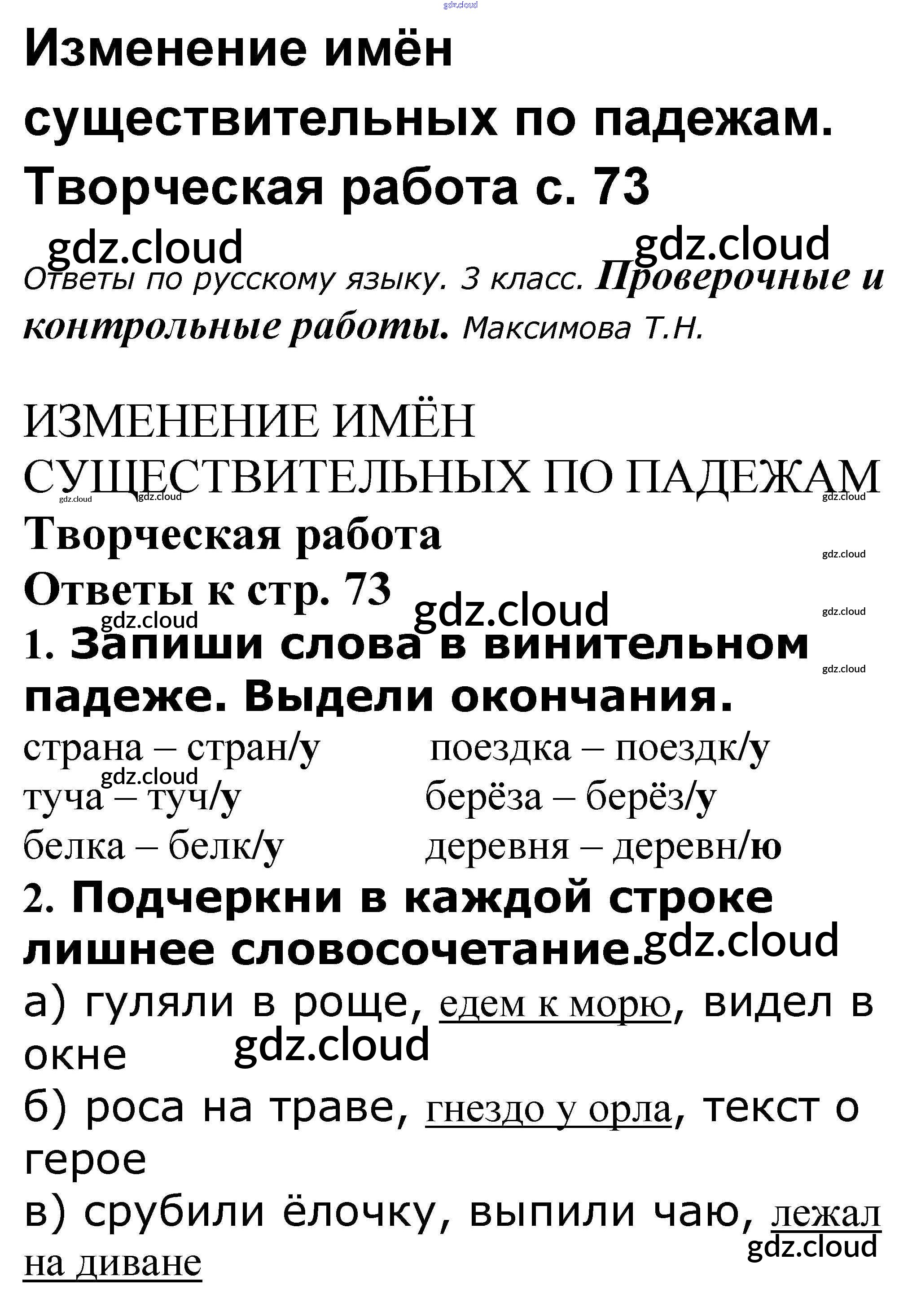 Ответы к теме: Изменение имён существительных по падежам по Русскому языку 3 класс Проверочные и контрольные работы Максимова ВАКО