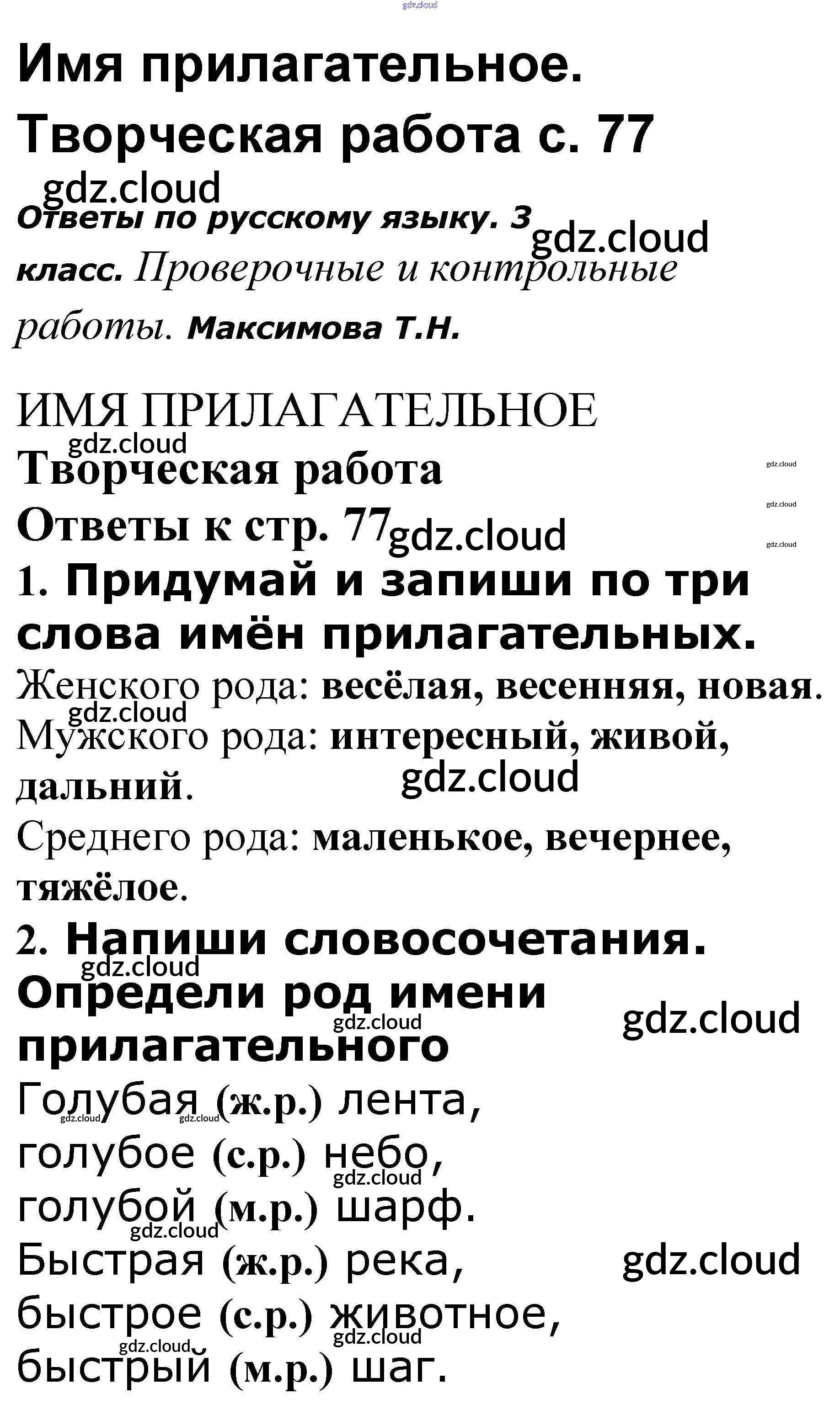 Ответ на задание 77 Проверочные и контрольные работы Русский язык за 3 (третий) класс Максимова 2018