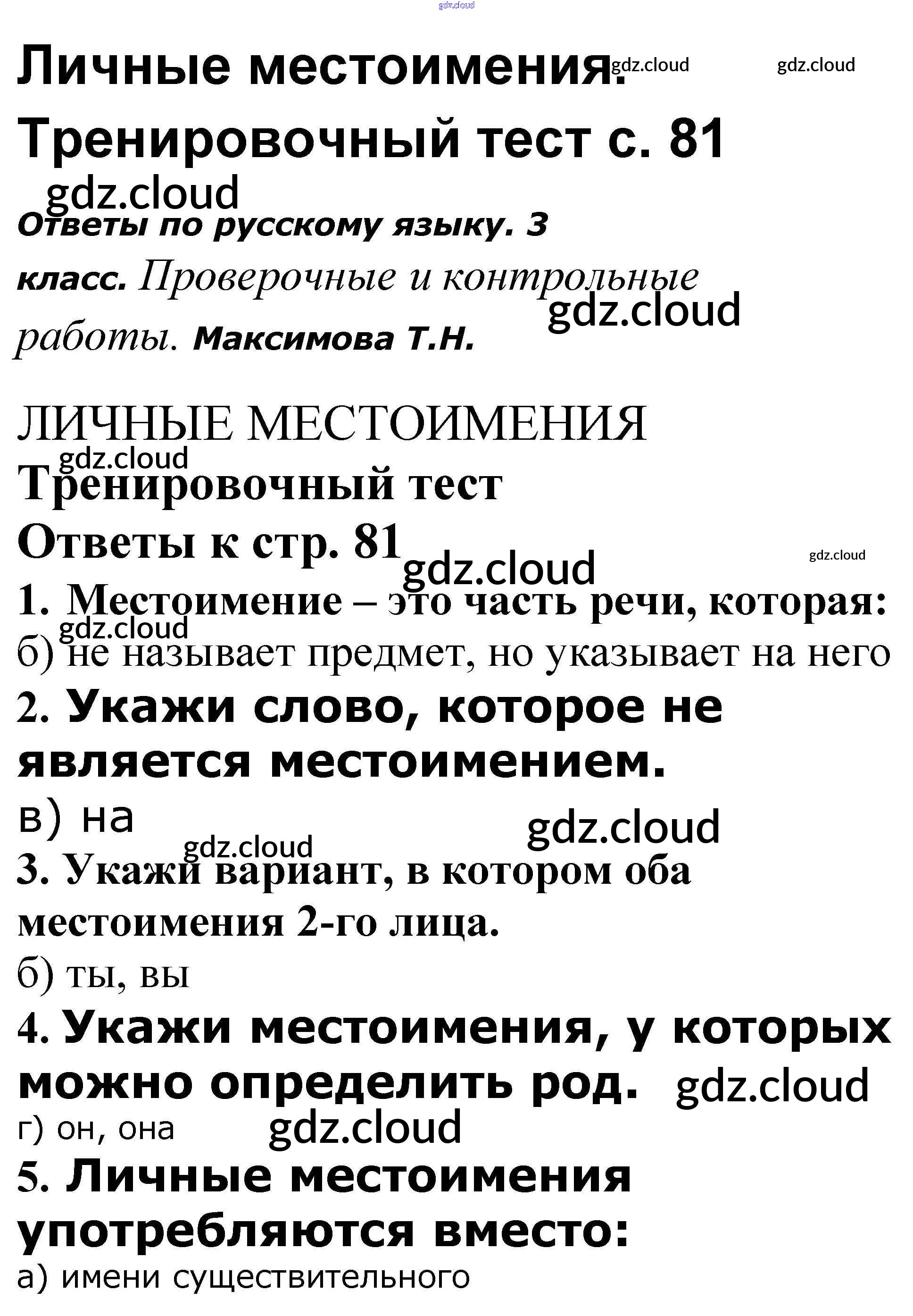 Ответы к теме: Личные местоимения по Русскому языку 3 класс Проверочные и контрольные работы Максимова ВАКО