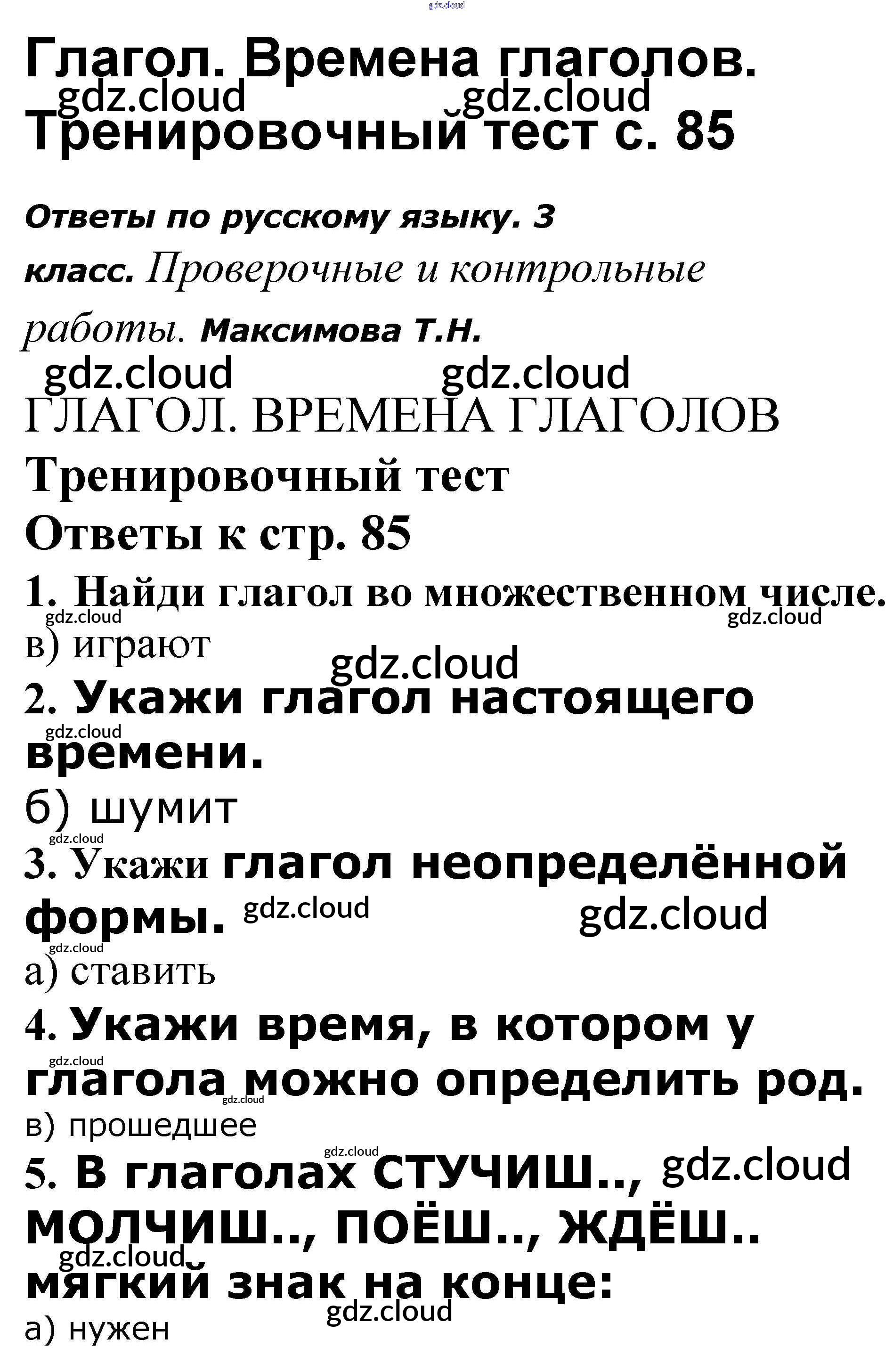Ответы к теме: Глагол. Времена глаголов по Русскому языку 3 класс Проверочные и контрольные работы Максимова ВАКО