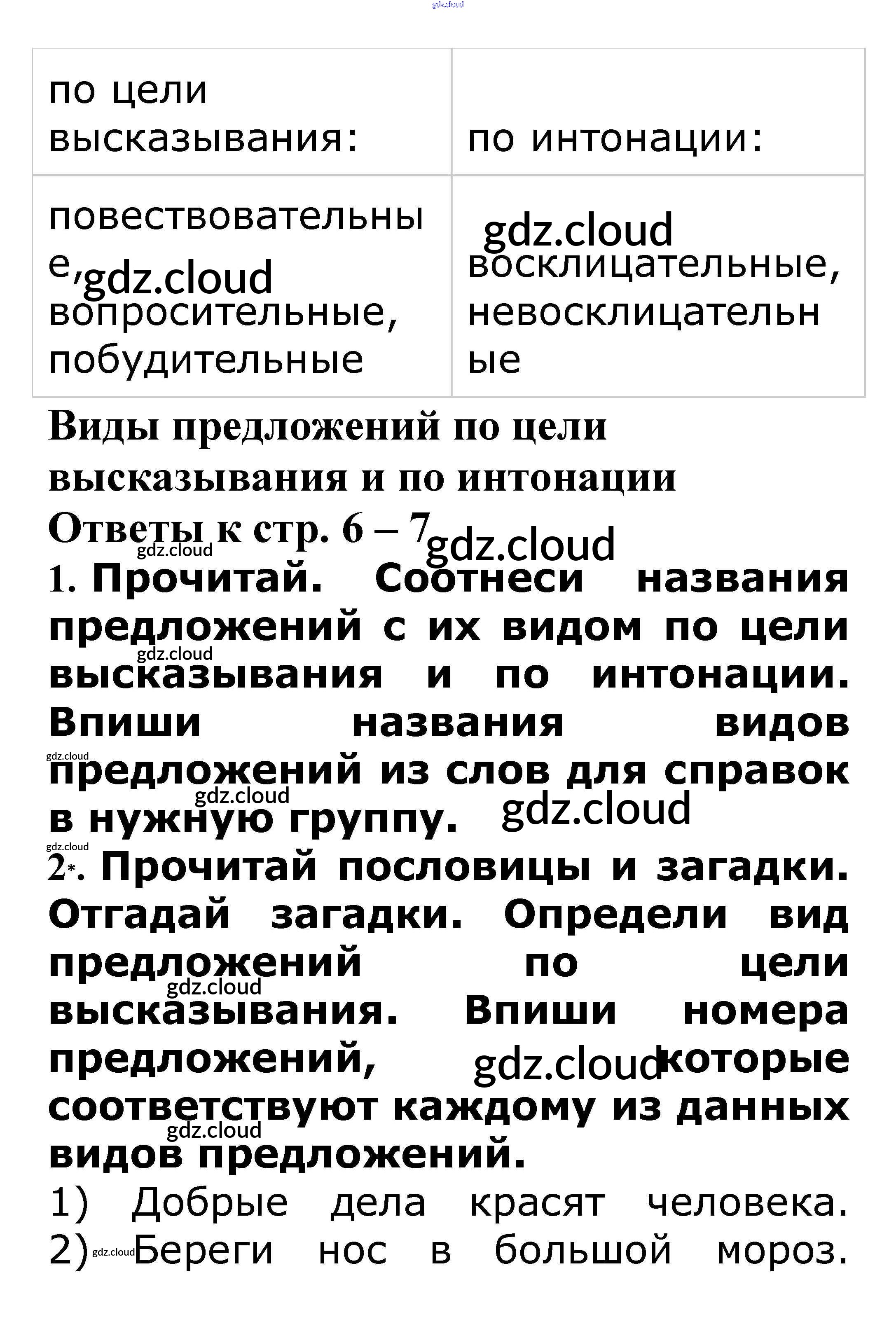 Ответ на задание Предложение. Виды предложений по цели высказывания и по интонации стр. 6 – 7 Проверочные работы Русский язык за 3 (третий) класс Канакина, Щеголева Школа России 2018