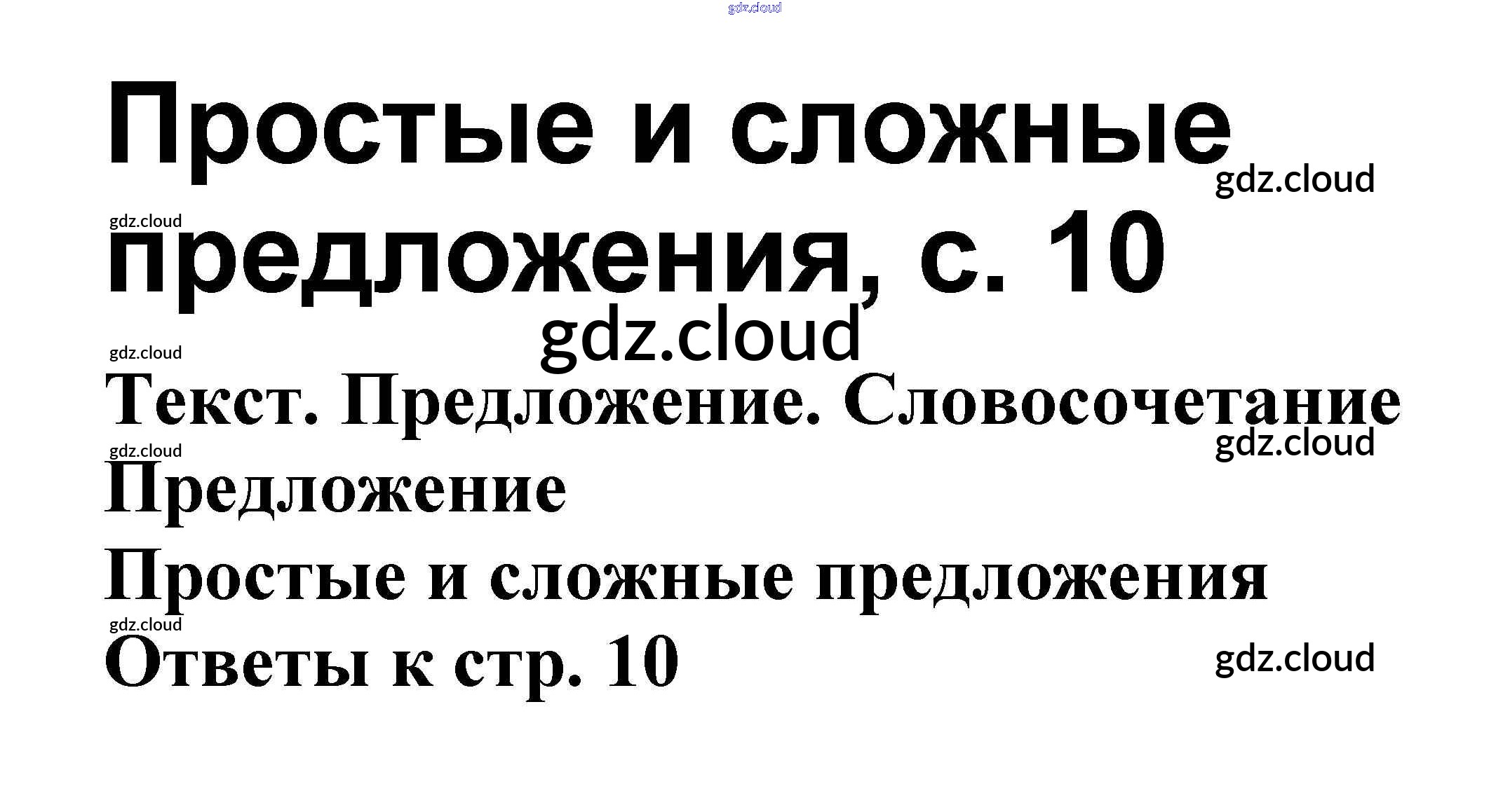 Ответ на задание Простые и сложные предложения стр. 10 Проверочные работы Русский язык за 3 (третий) класс Канакина, Щеголева Школа России 2018