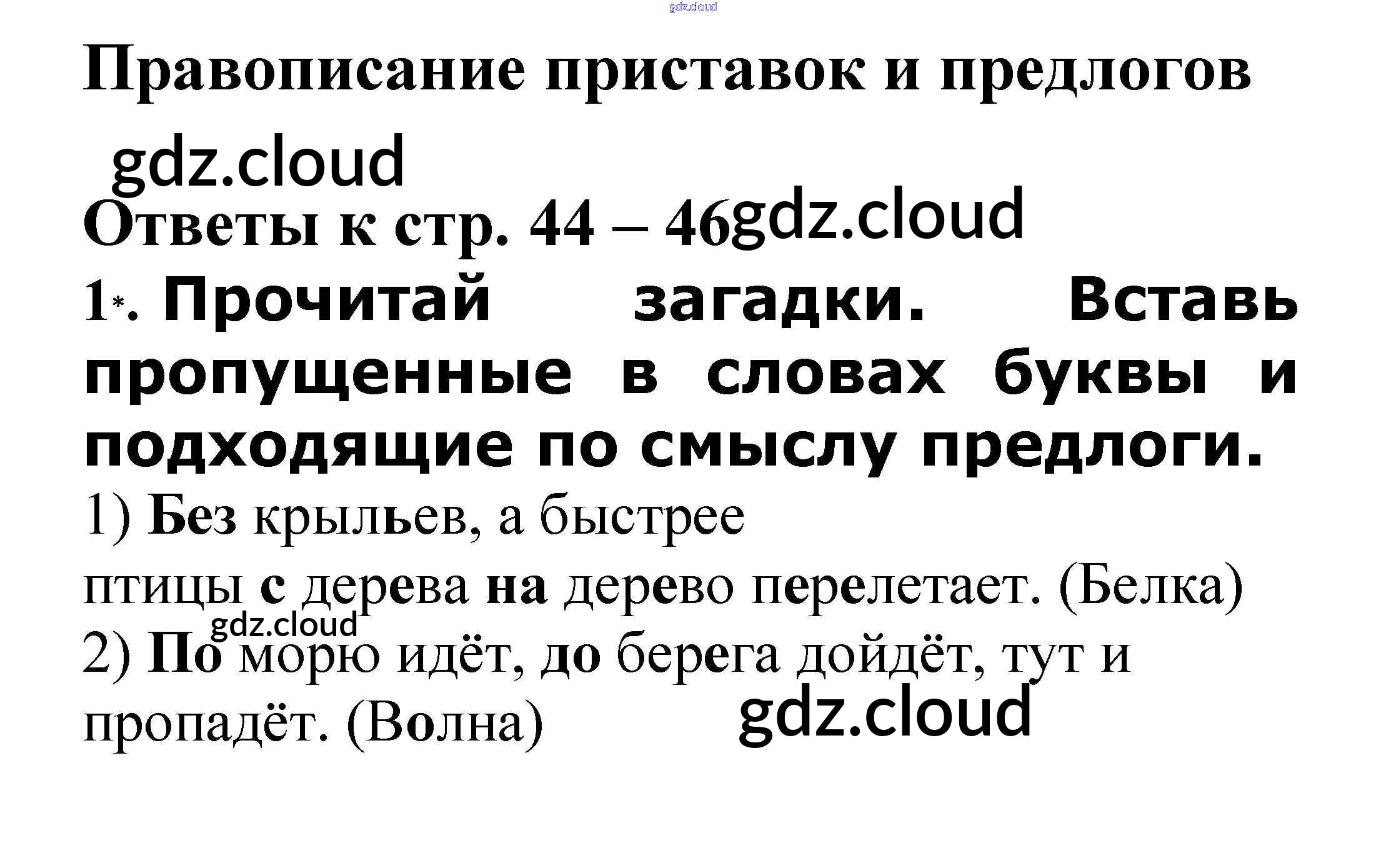 Ответ на задание Правописание приставок и предлогов стр. 44 – 46 Проверочные работы Русский язык за 3 (третий) класс Канакина, Щеголева Школа России 2018