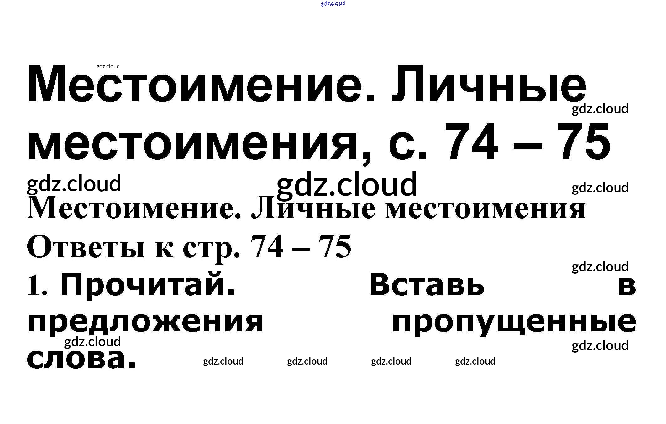 Ответ на задание Личные местоимения стр. 74 – 75 Проверочные работы Русский язык за 3 (третий) класс Канакина, Щеголева Школа России 2018