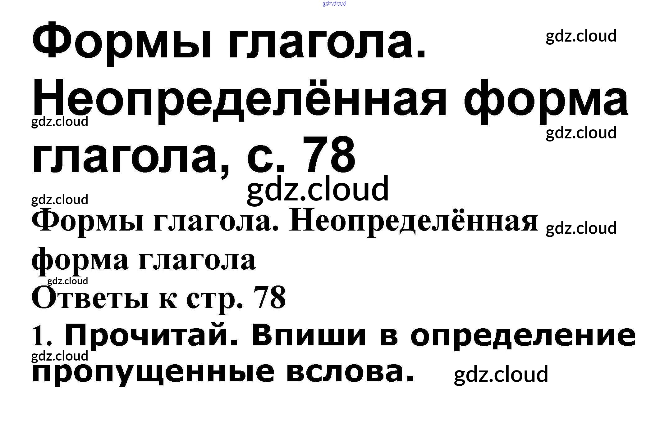 Ответ на задание Формы глагола. Неопределённая форма глагола стр. 78 Проверочные работы Русский язык за 3 (третий) класс Канакина, Щеголева Школа России 2018