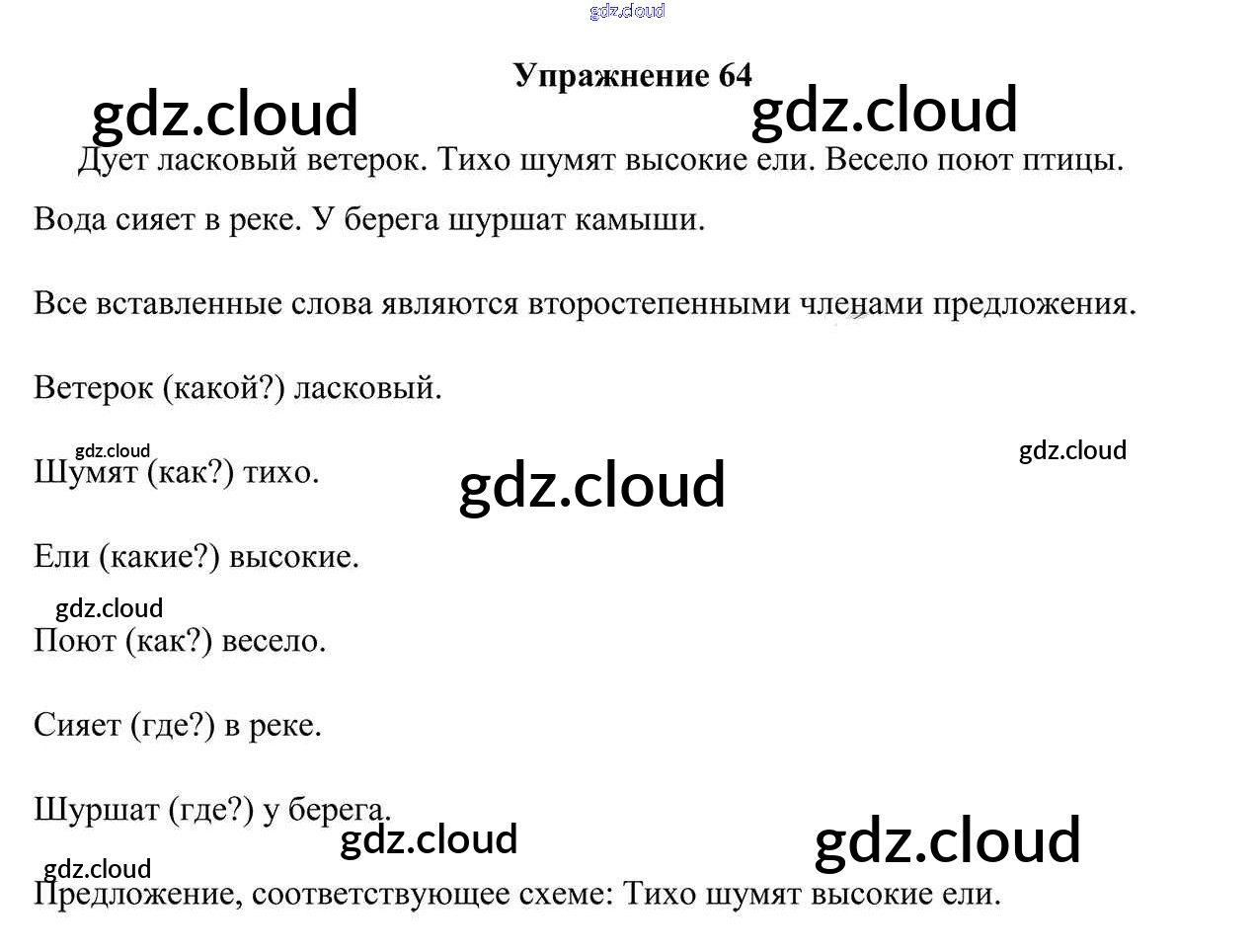 Ответ на задание упр. 64 Учебник Русский язык за 3 (третий) класс Антипова, Верниковская, Грабчикова 2019 Часть 1, 2