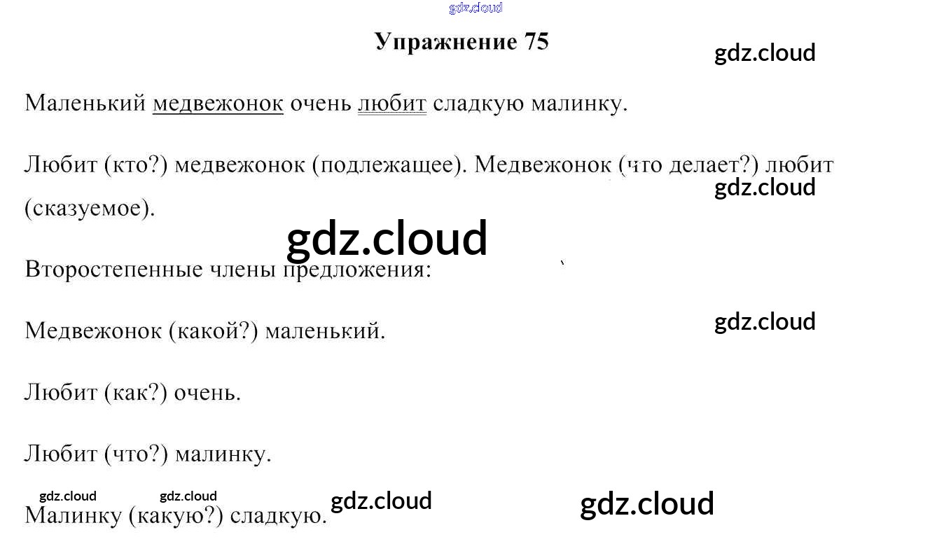 Ответ на задание упр. 75 Учебник Русский язык за 3 (третий) класс Антипова, Верниковская, Грабчикова 2019 Часть 1, 2
