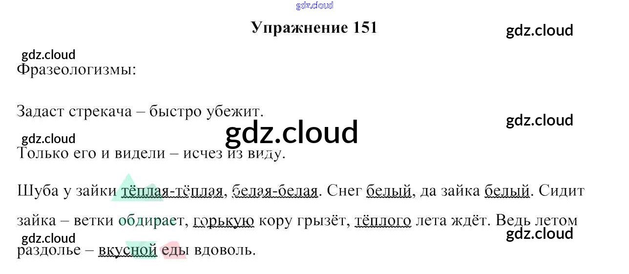 Ответ на задание упр. 151 Учебник Русский язык за 3 (третий) класс Антипова, Верниковская, Грабчикова 2019 Часть 1, 2