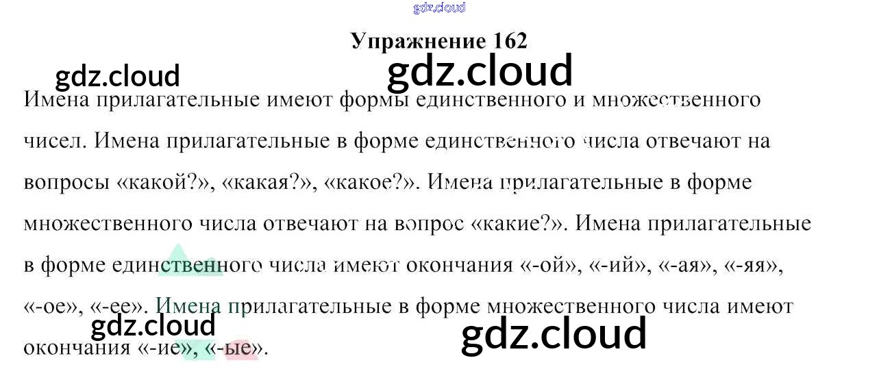 Ответ на задание упр. 162 Учебник Русский язык за 3 (третий) класс Антипова, Верниковская, Грабчикова 2019 Часть 1, 2