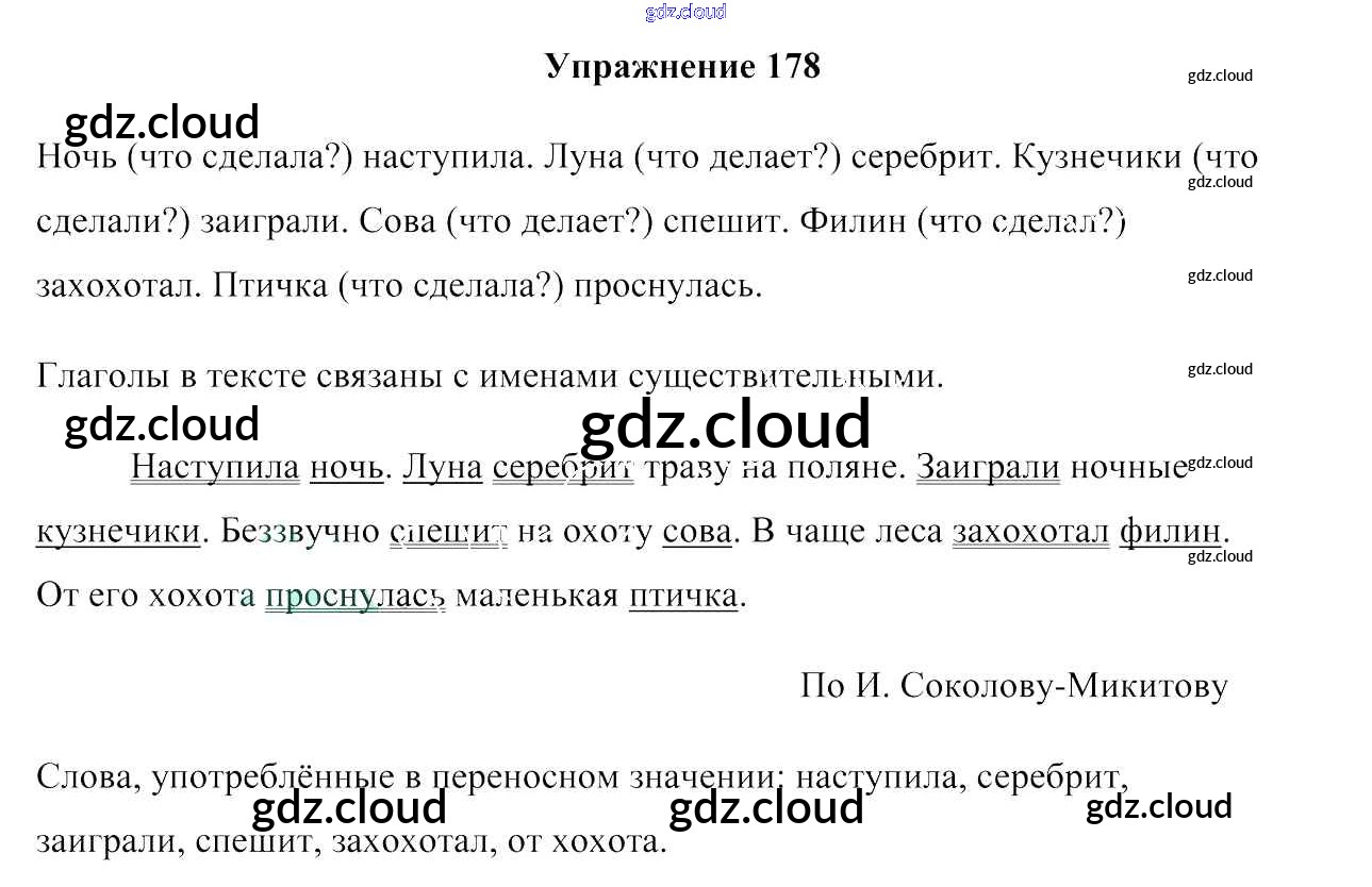 Ответ на задание упр. 178 Учебник Русский язык за 3 (третий) класс Антипова, Верниковская, Грабчикова 2019 Часть 1, 2