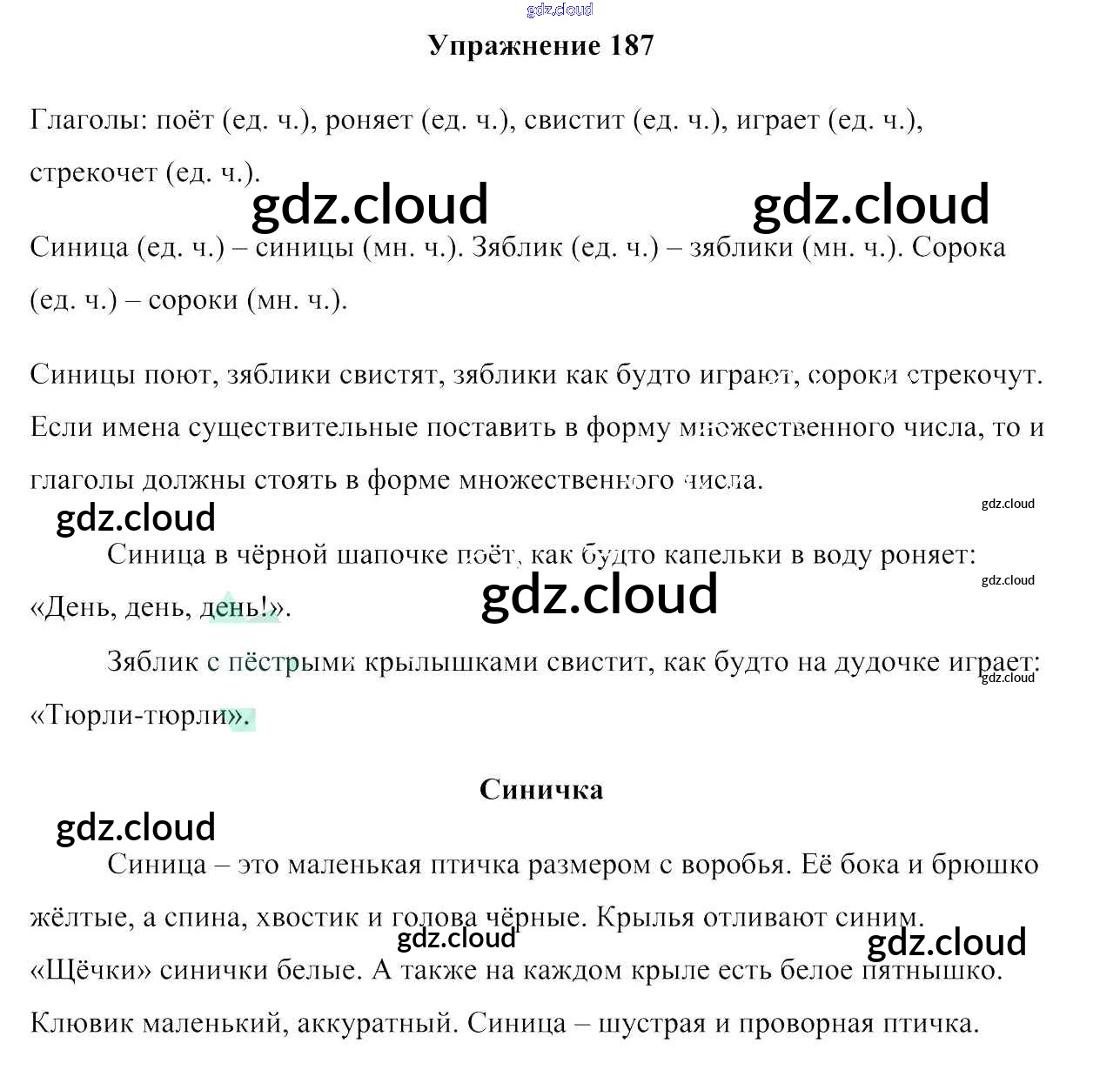Ответ на задание упр. 187 Учебник Русский язык за 3 (третий) класс Антипова, Верниковская, Грабчикова 2019 Часть 1, 2