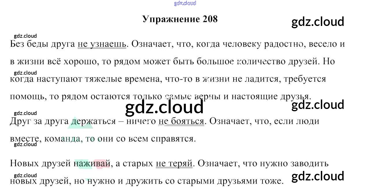 Ответ на задание упр. 208 Учебник Русский язык за 3 (третий) класс Антипова, Верниковская, Грабчикова 2019 Часть 1, 2