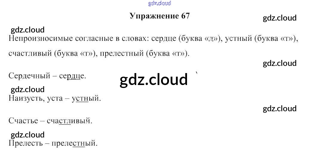 Ответ на задание упр. 67 Учебник Русский язык за 3 (третий) класс Антипова, Верниковская, Грабчикова 2019 Часть 1, 2