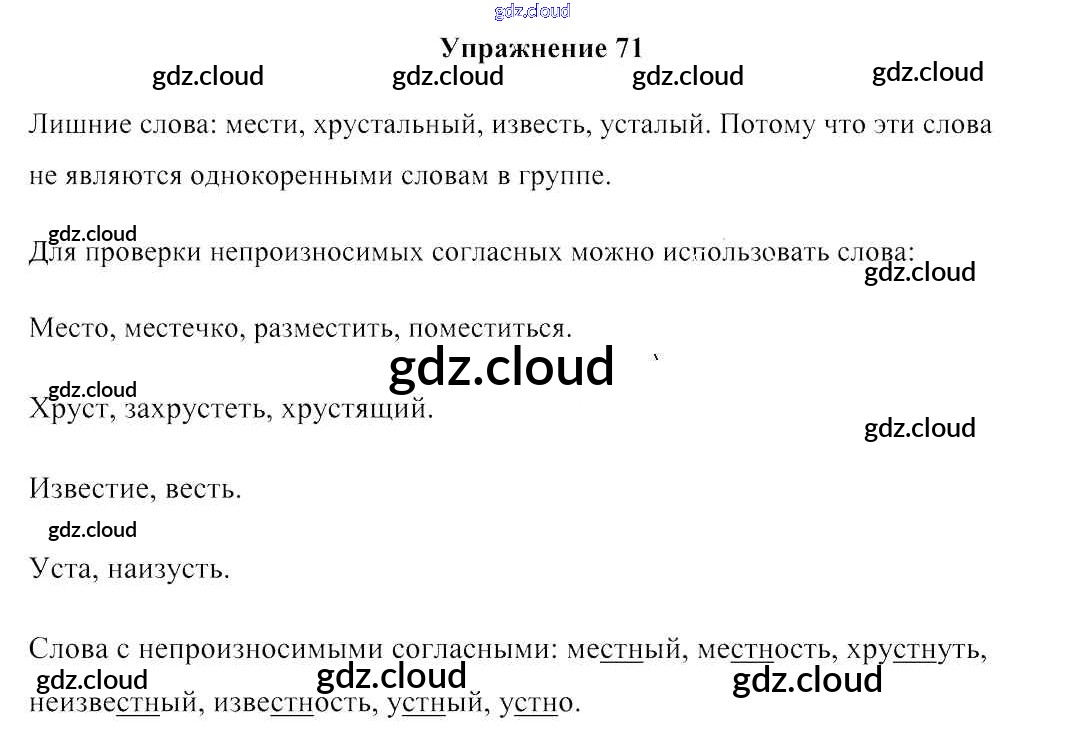 Ответ на задание упр. 71 Учебник Русский язык за 3 (третий) класс Антипова, Верниковская, Грабчикова 2019 Часть 1, 2