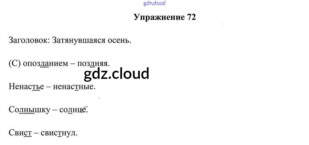 Ответ на задание упр. 72 Учебник Русский язык за 3 (третий) класс Антипова, Верниковская, Грабчикова 2019 Часть 1, 2