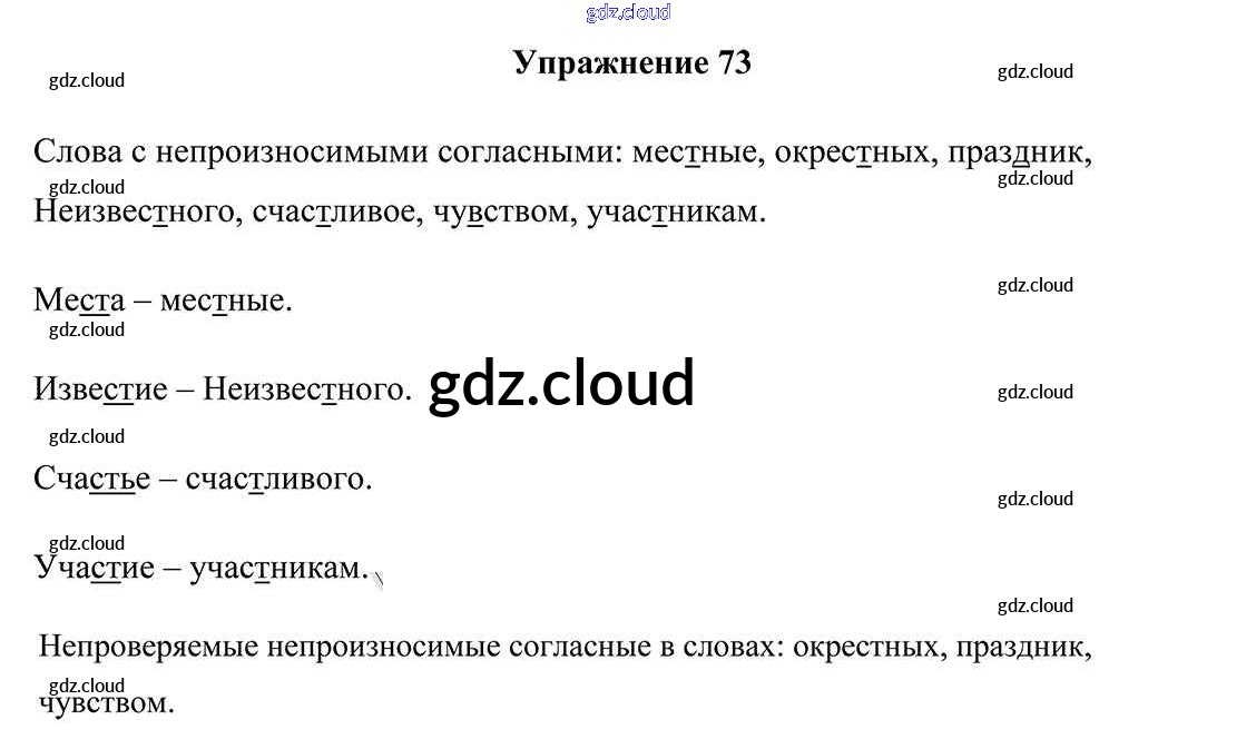 Ответ на задание упр. 73 Учебник Русский язык за 3 (третий) класс Антипова, Верниковская, Грабчикова 2019 Часть 1, 2