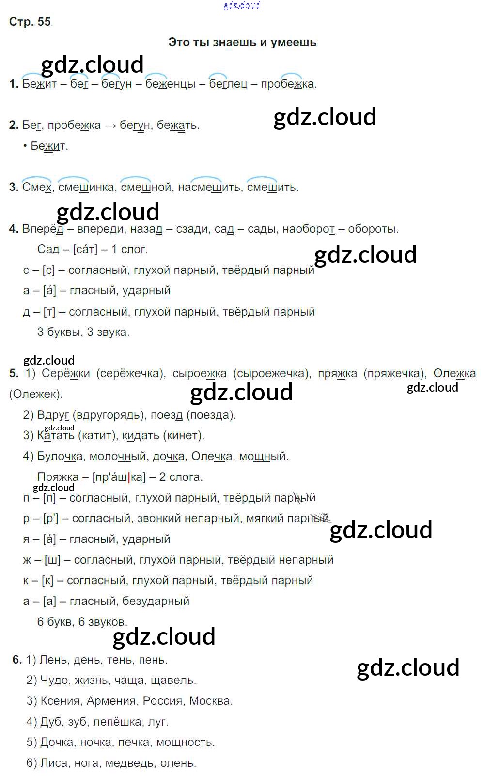 Ответ на задание стр.55 Учебник Русский язык за 3 (третий) класс Бунеев, Бунеева, Пронина Школа 2100 2015 Часть 1, 2