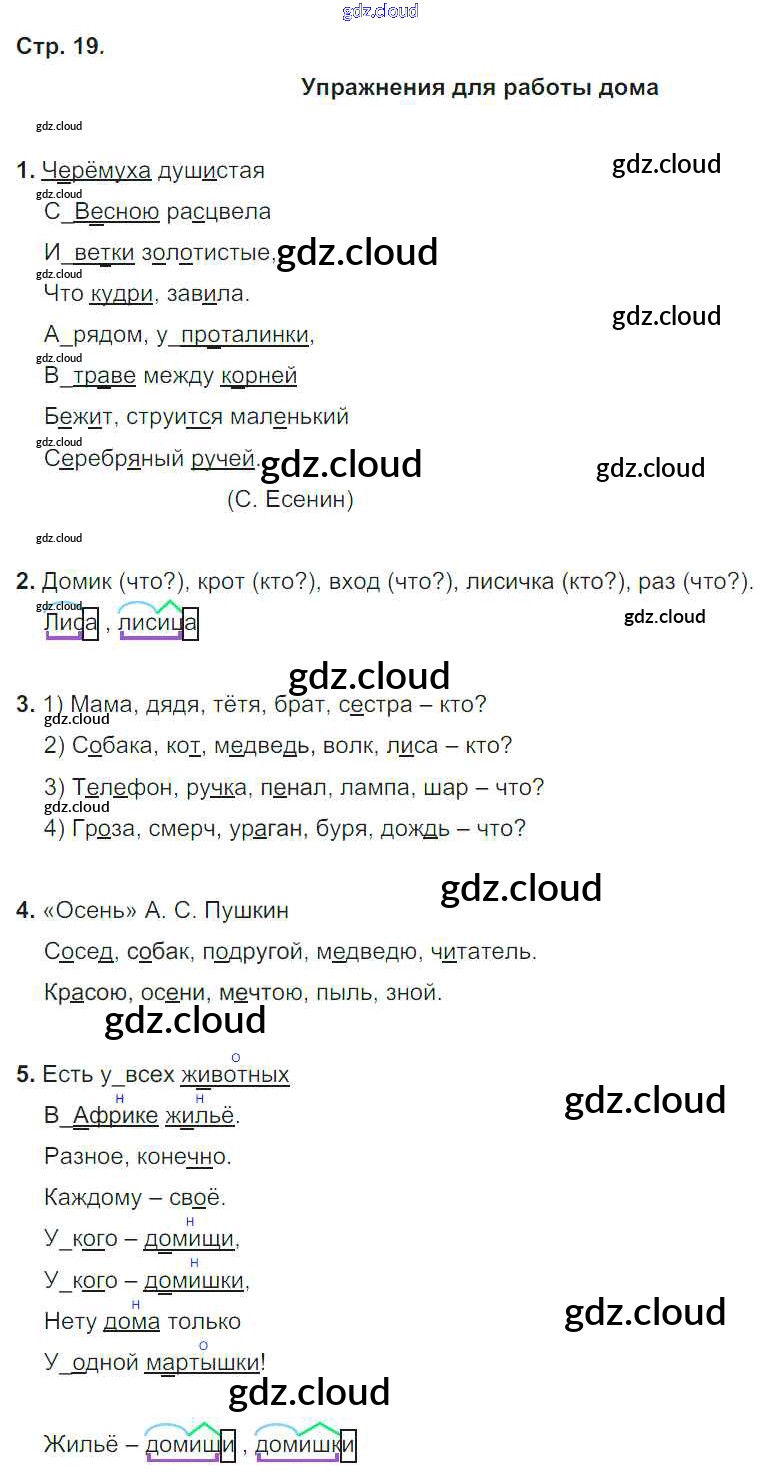 Упражнения для работы дома Ответы к части 2 (упражнения) по Русскому языку 3 класс Учебник Бунеев Школа 2100 Часть 1, 2 Баласс
