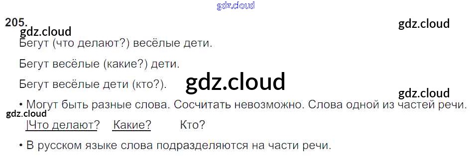 Ответ на задание 205 Учебник Русский язык за 3 (третий) класс Бунеев, Бунеева, Пронина Школа 2100 2015 Часть 1, 2