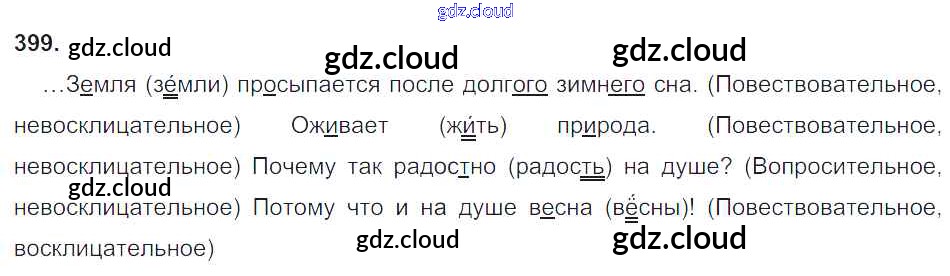 Ответ на задание 399 Учебник Русский язык за 3 (третий) класс Бунеев, Бунеева, Пронина Школа 2100 2015 Часть 1, 2