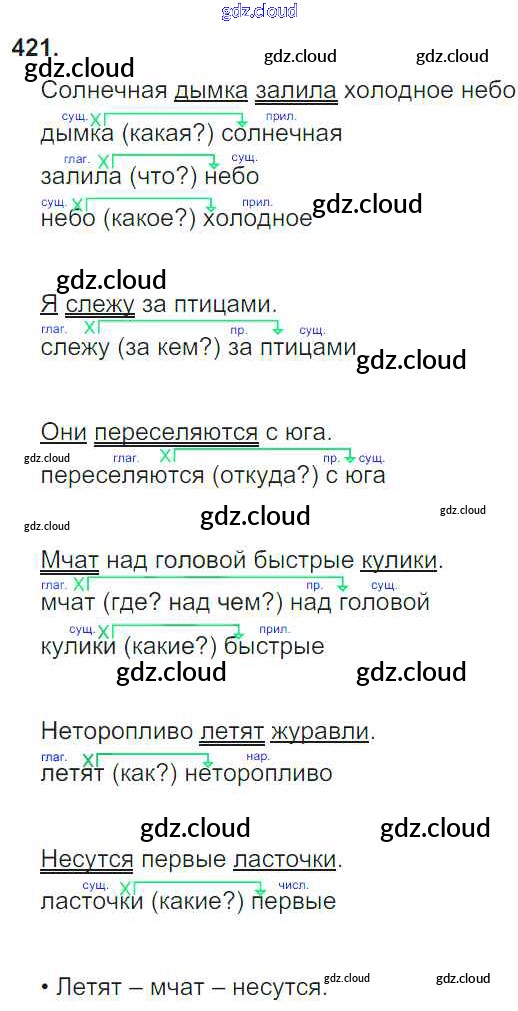 Ответ на задание 421 Учебник Русский язык за 3 (третий) класс Бунеев, Бунеева, Пронина Школа 2100 2015 Часть 1, 2