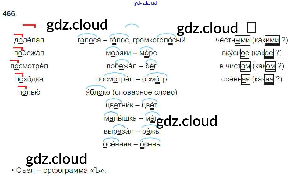 Ответ на задание 466 Учебник Русский язык за 3 (третий) класс Бунеев, Бунеева, Пронина Школа 2100 2015 Часть 1, 2
