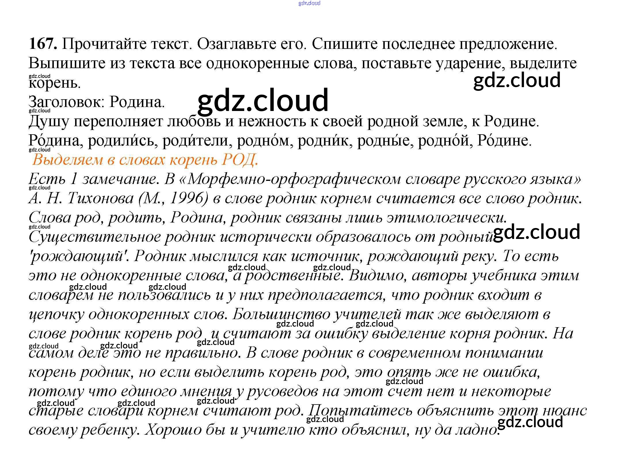 Ответ на задание 167 Учебник Русский язык за 3 (третий) класс Климанова, Бабушкина Перспектива 2014 Часть 1, 2