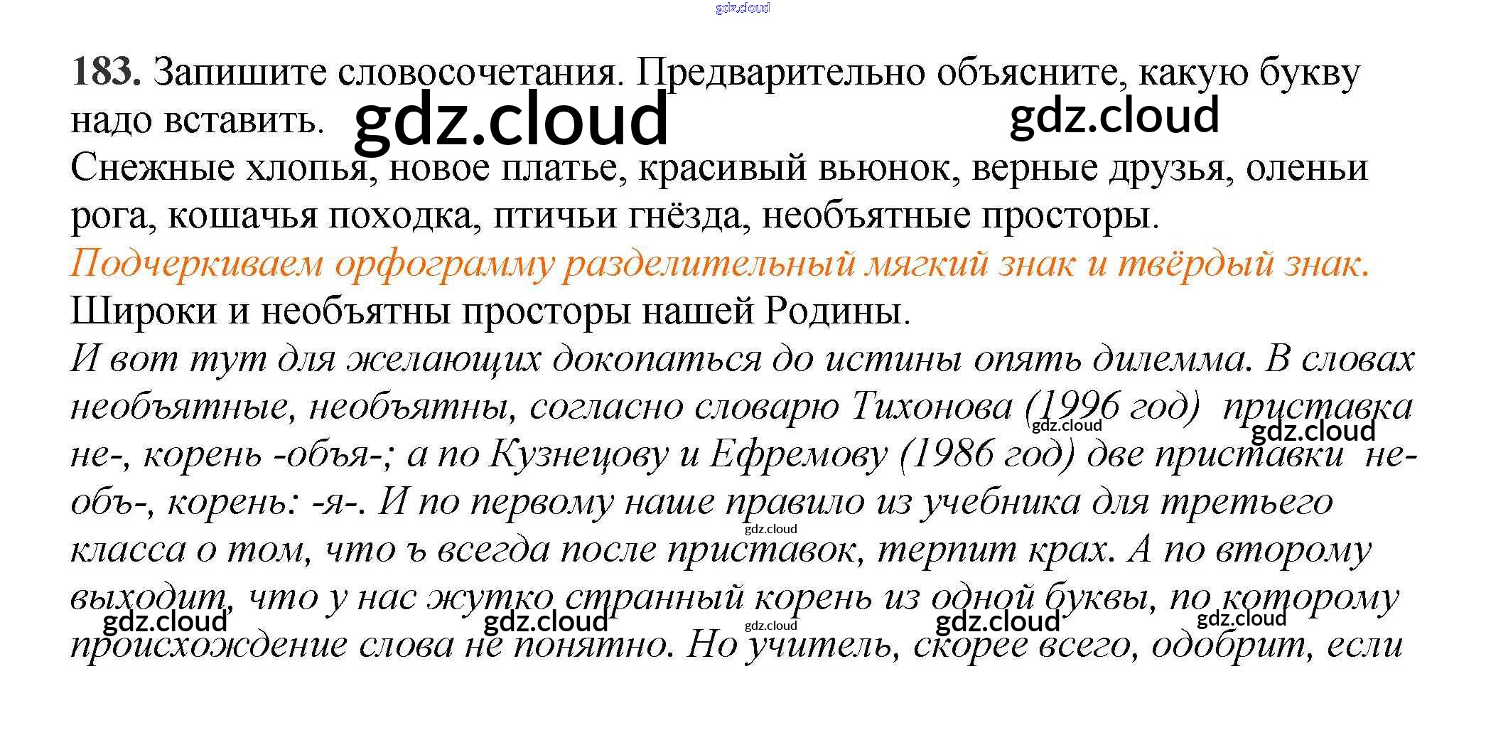 Ответ на задание 183 Учебник Русский язык за 3 (третий) класс Климанова, Бабушкина Перспектива 2014 Часть 1, 2
