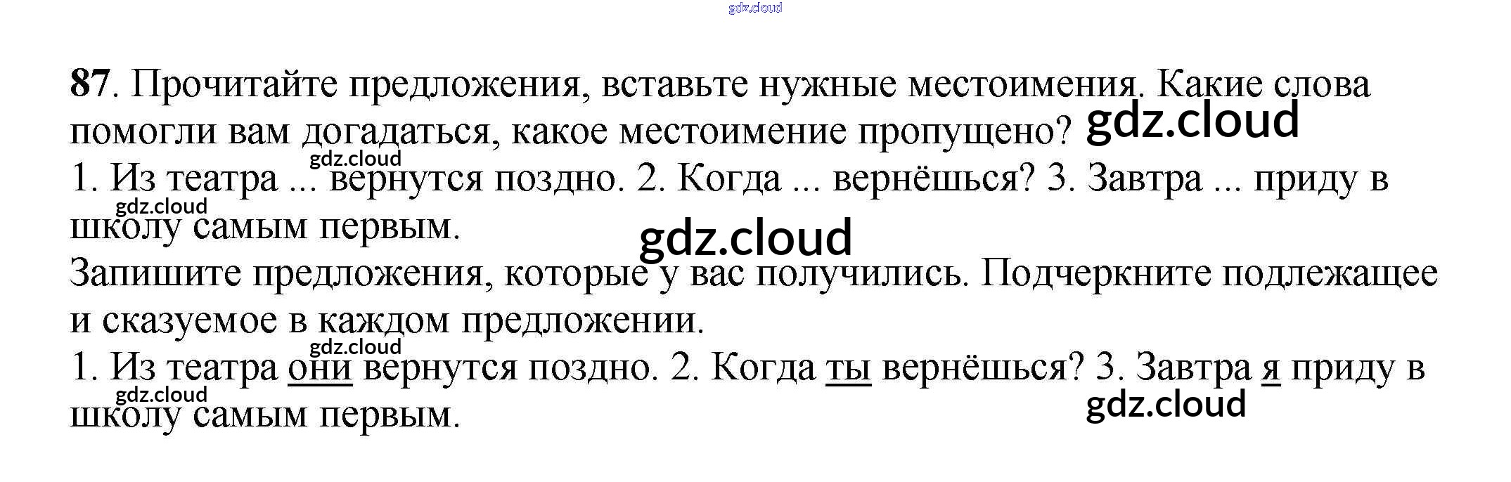 Ответ на задание 87 Учебник Русский язык за 3 (третий) класс Климанова, Бабушкина Перспектива 2014 Часть 1, 2