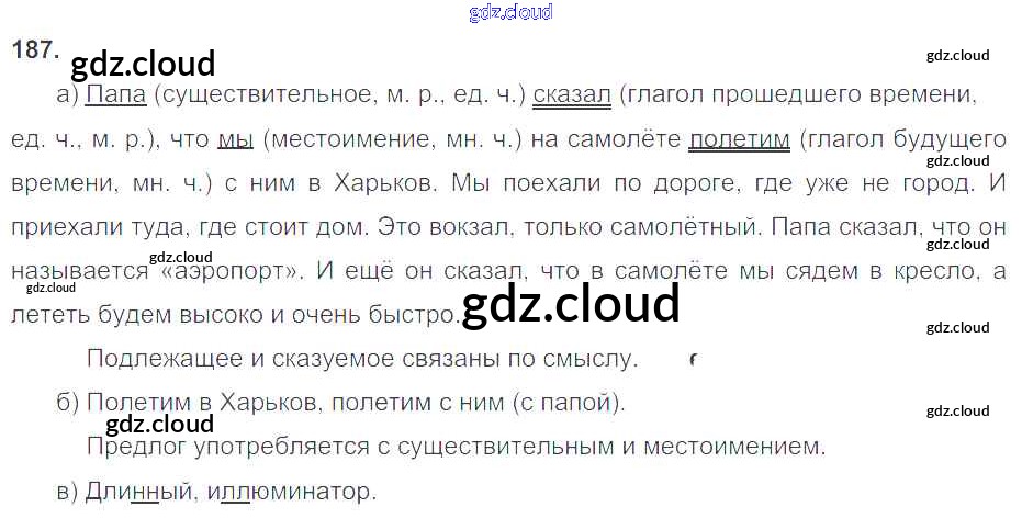 Ответ на задание 187 Учебник Русский язык за 3 (третий) класс Нечаева, Яковлева УМК 2014 Часть 1, 2 ФГОС онлайн и без номера телефона.