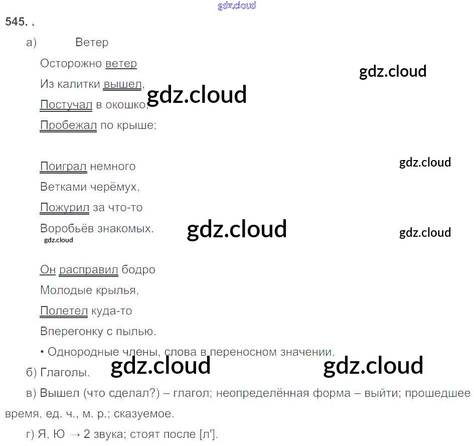 Ответ на задание 545 Учебник Русский язык за 3 (третий) класс Нечаева, Яковлева УМК 2014 Часть 1, 2 ФГОС онлайн и без номера телефона.