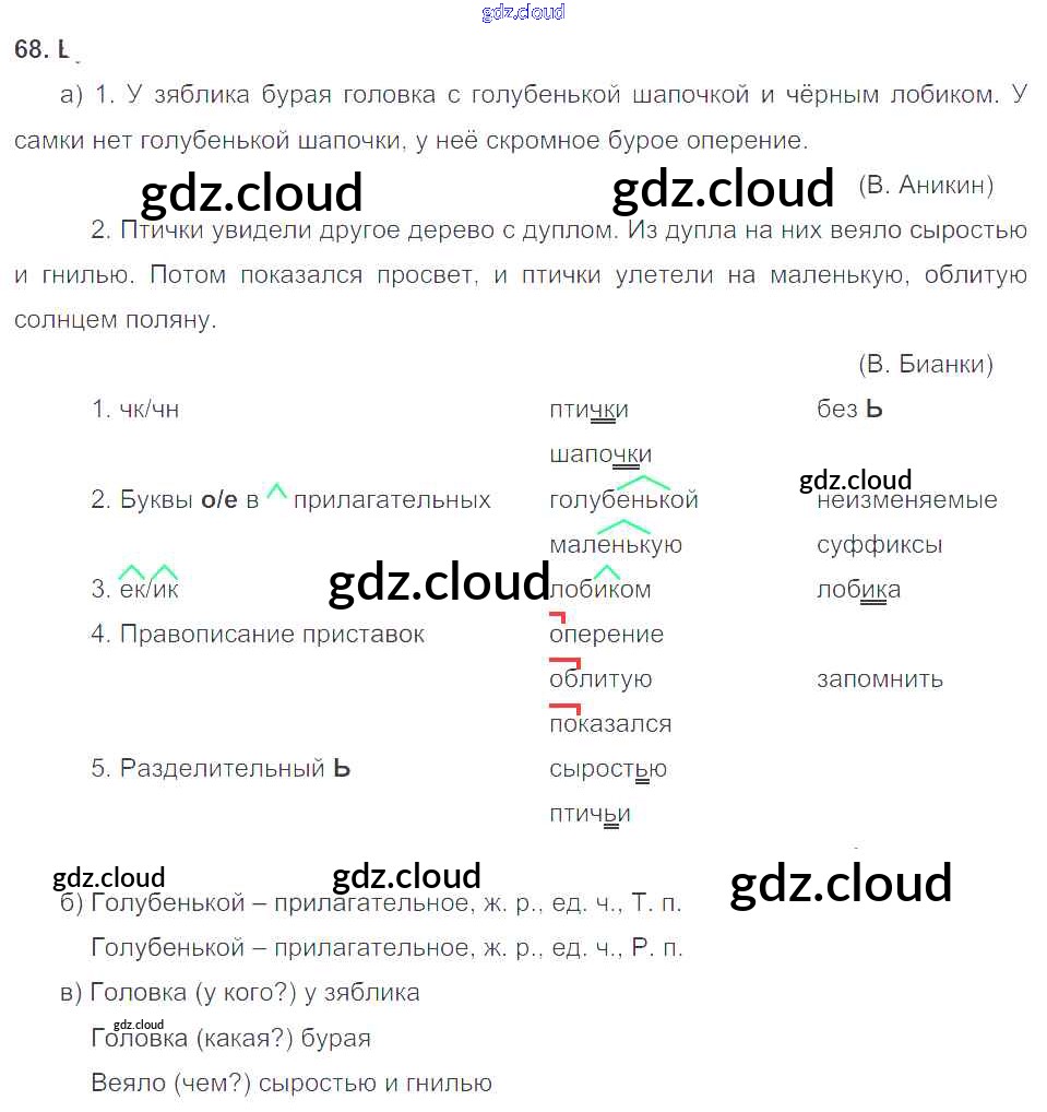 Ответ на задание 68 Учебник Русский язык за 3 (третий) класс Нечаева, Яковлева УМК 2014 Часть 1, 2 ФГОС онлайн и без номера телефона.