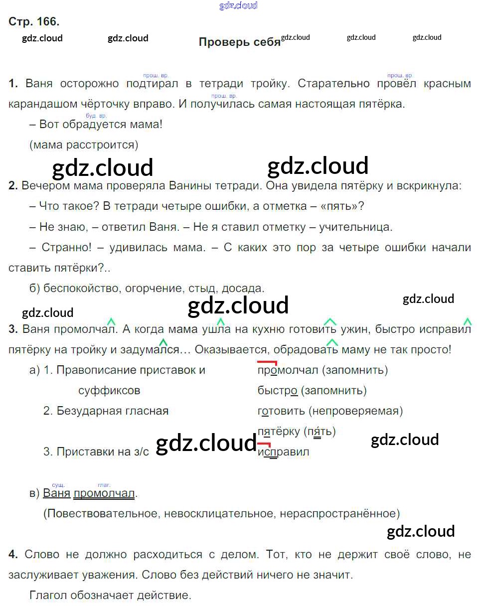 Ответ на задание 166 Учебник Русский язык за 3 (третий) класс Нечаева, Яковлева УМК 2014 Часть 1, 2