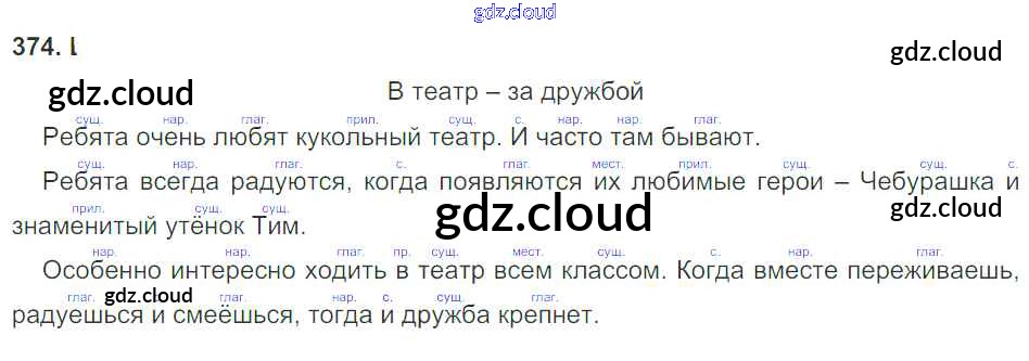 Ответ на задание 374 Учебник Русский язык за 3 (третий) класс Рамзаева Ритм 2016 Часть 1, 2 ФГОС онлайн и без номера телефона.