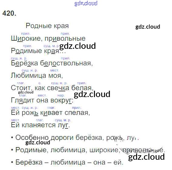 Ответ на задание 420 Учебник Русский язык за 3 (третий) класс Рамзаева Ритм 2016 Часть 1, 2 ФГОС онлайн и без номера телефона.