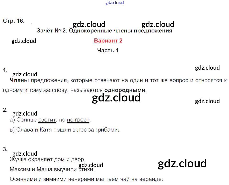 Ответы к части 1. Страницы по Русскому языку 4 класс Зачётные работы Алимпиева УМК Экзамен
