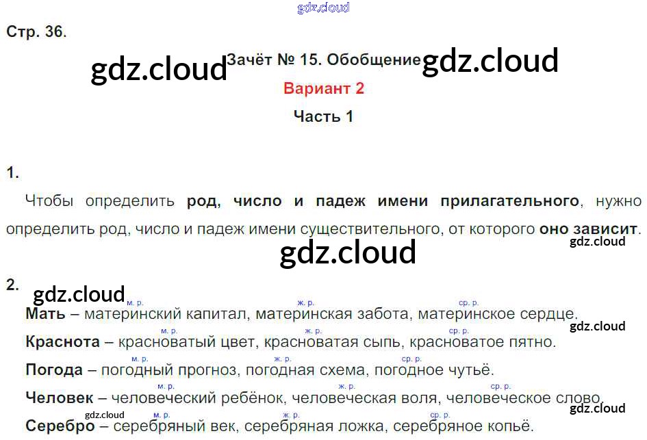 Ответ на задание 36 Зачётные работы Русский язык за 4 (четвертый) класс Алимпиева, Векшина УМК 2016