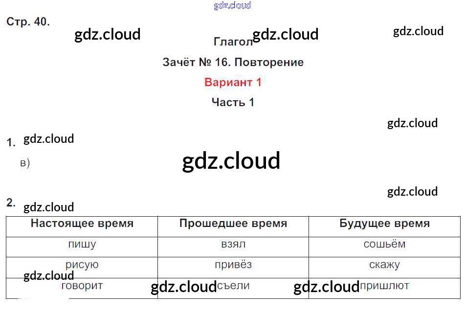 Ответ на задание 40 Зачётные работы Русский язык за 4 (четвертый) класс Алимпиева, Векшина УМК 2016