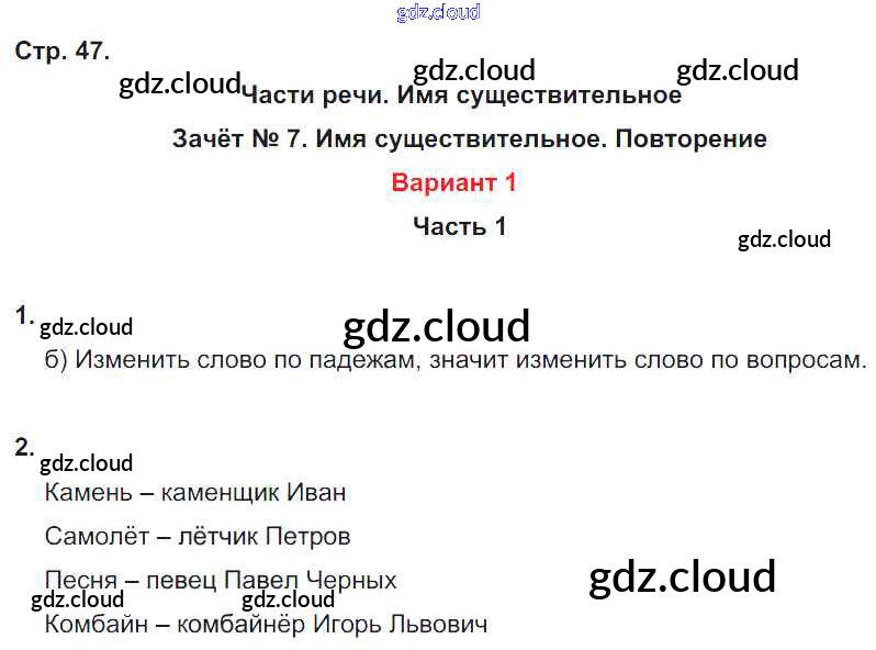 Ответы к части 1. Страницы по Русскому языку 4 класс Зачётные работы Алимпиева УМК Экзамен