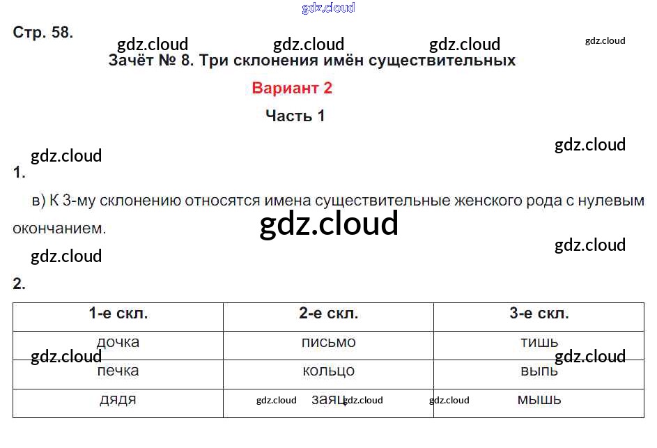 Ответ на задание 58 Зачётные работы Русский язык за 4 (четвертый) класс Алимпиева, Векшина УМК 2016