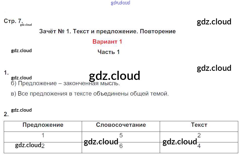 Ответы к части 1. Страницы по Русскому языку 4 класс Зачётные работы Алимпиева УМК Экзамен