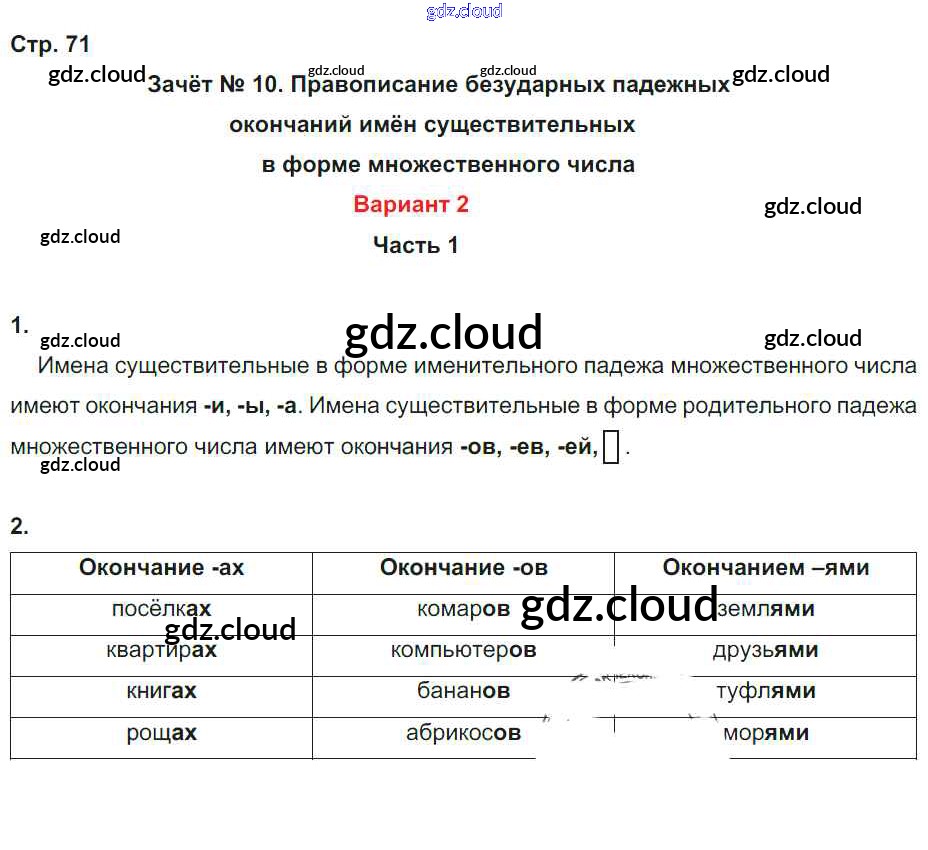 Ответ на задание 71 Зачётные работы Русский язык за 4 (четвертый) класс Алимпиева, Векшина УМК 2016