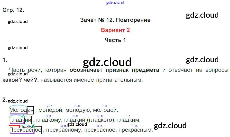 Ответ на задание 12 Зачётные работы Русский язык за 4 (четвертый) класс Алимпиева, Векшина УМК 2016