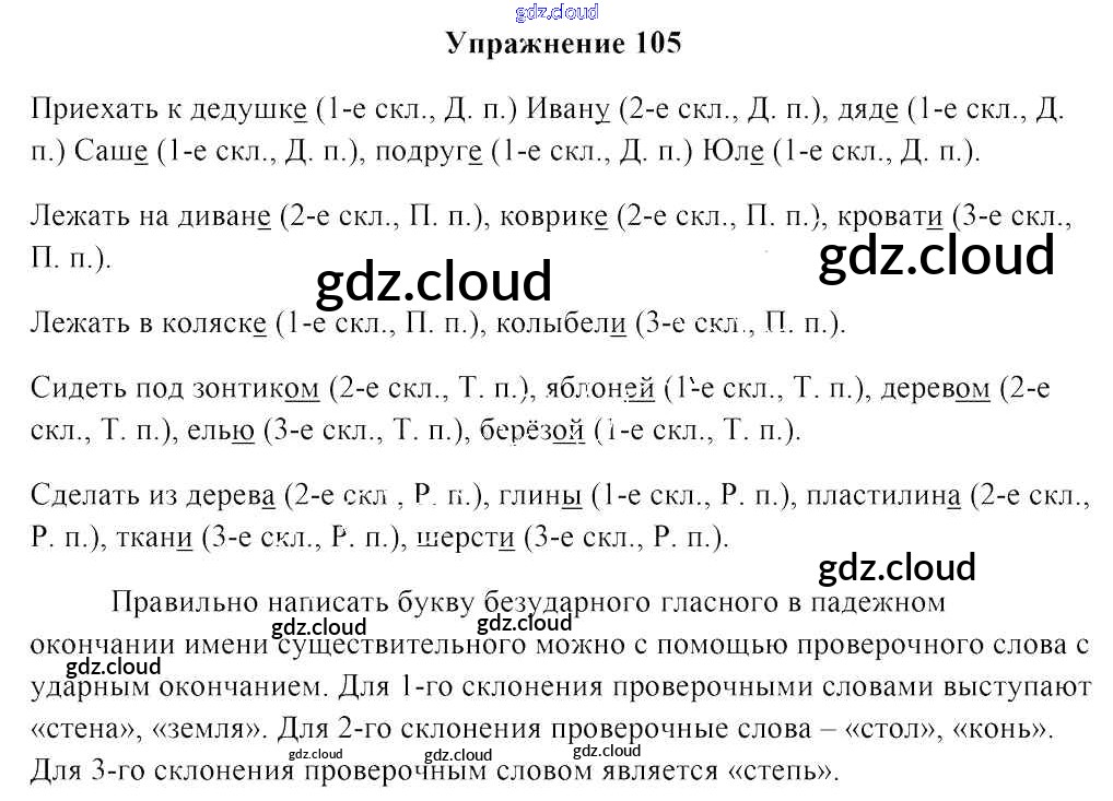 Ответ на задание упр. 105 Учебник Русский язык за 4 (четвертый) класс Антипова, Верниковская, Грабчикова 2018 Часть 1, 2