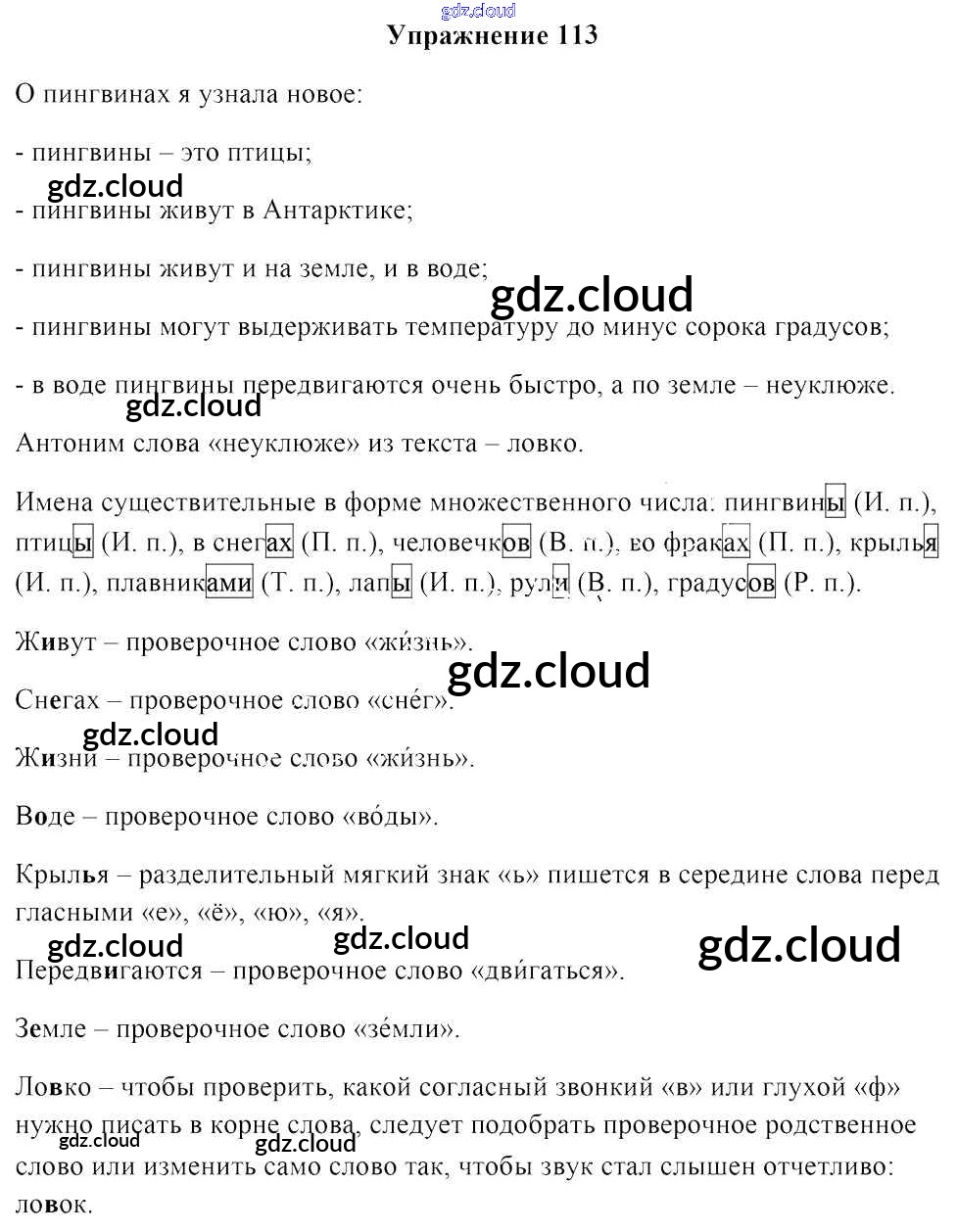 Ответ на задание упр. 113 Учебник Русский язык за 4 (четвертый) класс Антипова, Верниковская, Грабчикова 2018 Часть 1, 2